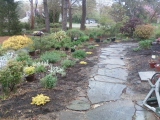 Having stripped the front porch off my house, I was then given the wonderful opportunity to create a new front garden. First I decided on and laid out a fieldstone walk. And then I was challenged by the reality that much of the garden, against the north side of my property, would have to be planted as a “shade” garden, Ughh! And the other side of the walk is full sun.