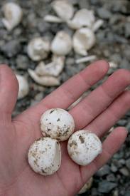 I suddenly scooped up two white items, like little golf balls, perfectly round and bright white. I BROKE one and realized I had stumbled upon turtle eggs! For I could see the gooey mass of a growing being inside that shell. I happened to have the phone number of the local Audubon office and called. I knew there was a small pond down the hill and surmised that these were snapping turtle eggs. The volunteer confirmed my guess. This picture was a download from my google search. I was so distraught that I had killed a baby that I had quickly buried the two back in the ground with their brethren. I was told that there could be as many as 70 eggs!! I find it amazing that this female turtle had scaled this hill AROUND the pool to lay her eggs in the good earth of the garden.